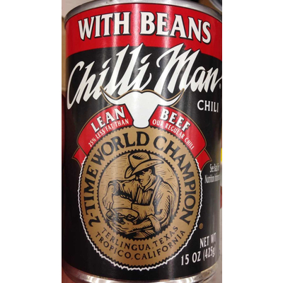 Chilli Man Chili with Beans, Lean Beef (1 cup) contains 32g total carbs, 22g net carbs, 10g fat, 24g protein, and 310 calories.