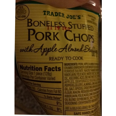 Carbs in Trader Joe's Boneless Stuffed Pork Chops with Apple Almond Stuffing