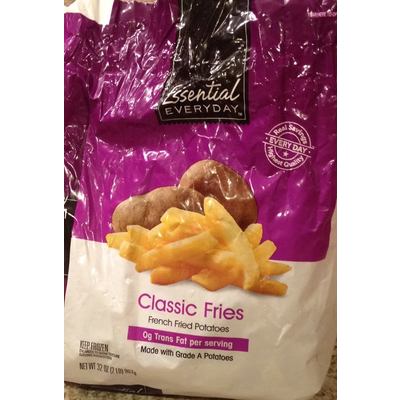 Essential Everyday Classic Fried, French Fried Potatoes (10 pieces) contains 20g total carbs, 18g net carbs, 2g fat, 2g protein, and 110 calories.