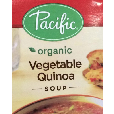 Pacific Vegetable Quinoa Soup (1 cup) contains 18g total carbs, 15g net carbs, 2g fat, 3g protein, and 90 calories.