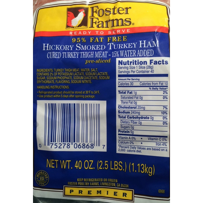Carbs in Foster Farms 95% Fat Free Hickory Smoked Turkey Ham