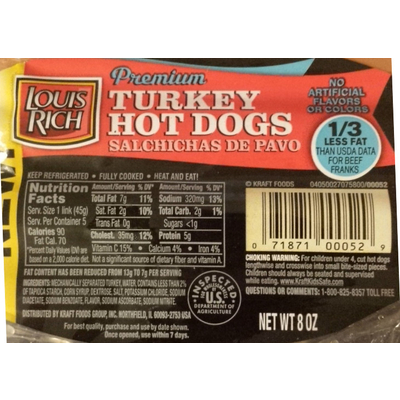 Carbs in Louis Rich Premium Turkey Hot Dogs