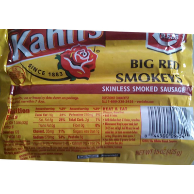 Carbs in Kahn's Skinless Smoked Sausage, Big Red Smokeys