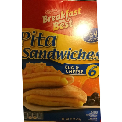 Breakfast Best Pita Sandwiches (1 sandwich) contains 12g total carbs, 11g net carbs, 8g fat, 8g protein, and 150 calories.