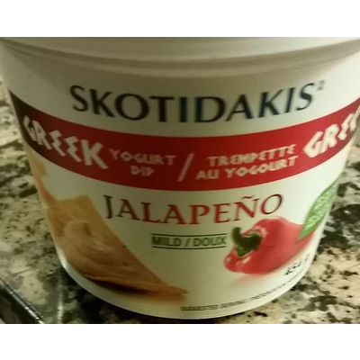 Skotidakis Greek Yogurt Dip, Jalapeno, Mild (2 tbsp) contains 4g total carbs, 4g net carbs, 3.5g fat, 2g protein, and 50 calories.
