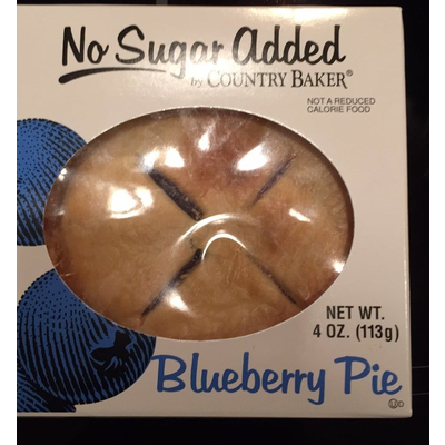 Country Baker No Sugar Added Blueberry Pie (1 pie) contains 48g total carbs, 46g net carbs, 17g fat, 3g protein, and 330 calories.