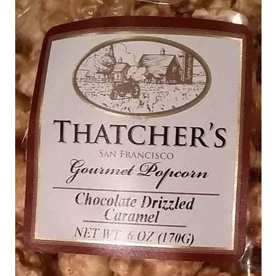 Thatcher's Gourmet Specialties Popcorn Gourmet Popcorn, Chocolate Drizzled Caramel (1 oz) contains 25g total carbs, 23g net carbs, 8g fat, 2g protein, and 175 calories.