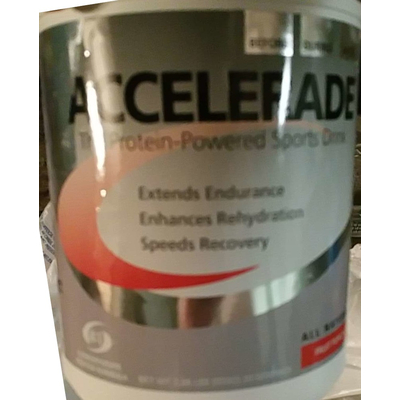 Accelerade Protein-Powdered Sports Drink (1 scoop) contains 21g total carbs, 21g net carbs, 1g fat, 5g protein, and 120 calories.