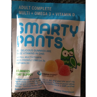 Smarty Pants Adult Complete Multi + Omega 3 + Vitamin D (6 gummies) contains 11g total carbs, 11g net carbs, 0g fat, 0g protein, and 50 calories.