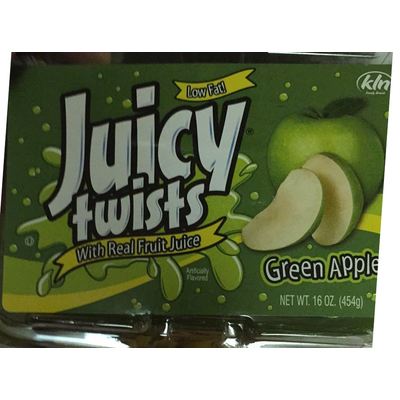Juicy Twists Green Apple (6 twists) contains 35g total carbs, 35g net carbs, 0g fat, 1g protein, and 150 calories.
