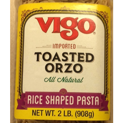 Vigo Toasted Orzo, Rice Shaped Pasta (2 oz dry) contains 41g total carbs, 39g net carbs, 1g fat, 8g protein, and 200 calories.