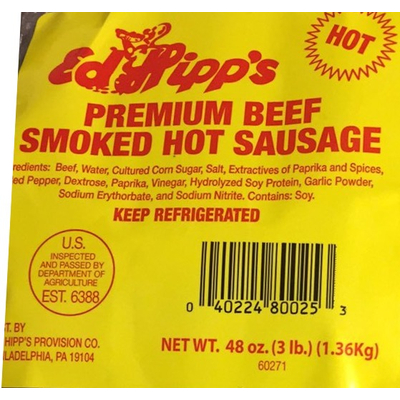 Carbs in Ed Hipp's Premium Beef Smoked Hot Sausage