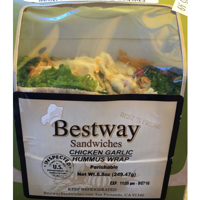 Carbs in Bestway Sandwiches Chicken Garlic Hummus Wrap
