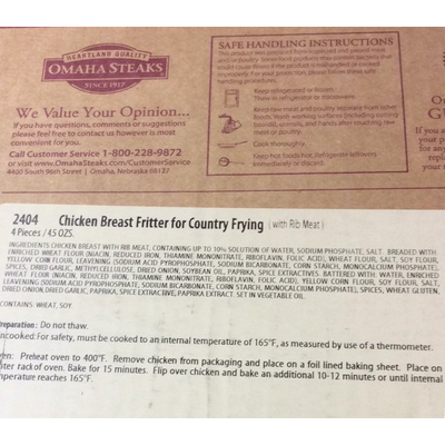 Carbs in Omaha Steaks Chicken Breast Fritter for Country Frying