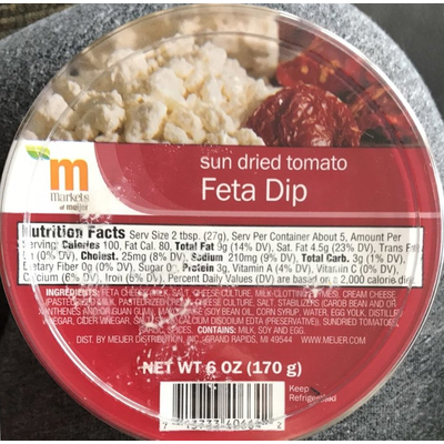 Carbs in Markets of Meijer Sun Dried Tomato, Feta Dip