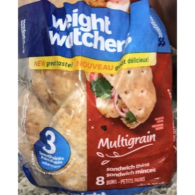 Weight Watchers Sandwich Thins, Multigrain (1 bun) contains 20g total carbs, 17g net carbs, 1.5g fat, 4g protein, and 110 calories.