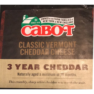 Cabot 3 Year Cheddar Cheese (1 oz.) contains 0.5g total carbs, 0.5g net carbs, 9g fat, 7g protein, and 110 calories.