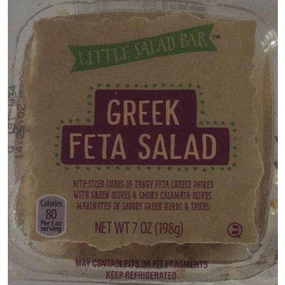 Little Salad Bar Greek Feta Salad (1 oz) contains 0.5g total carbs, 0.5g net carbs, 6g fat, 5g protein, and 80 calories.