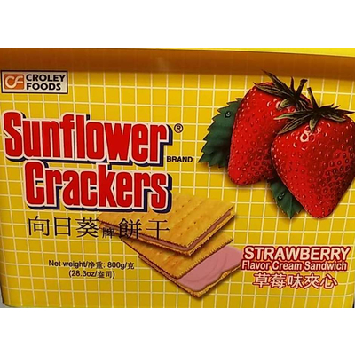Sunflower Crackers, Strawberry Cream (1 sandwich) contains 10g total carbs, 9g net carbs, 1.5g fat, 1g protein, and 60 calories.
