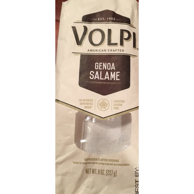 Volpi Genoa Salame (1 oz) contains 0g total carbs, 0g net carbs, 8g fat, 8g protein, and 110 calories.