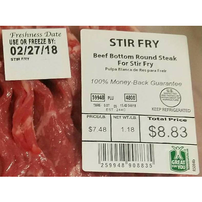 Carbs in Tyson Fresh Meats Beef Bottom Round Steak, Stir Fry