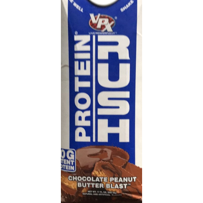 VPX Protein Rush, Chocolate Peanut Butter Blast (17 fl oz) contains 10g total carbs, 4g net carbs, 6g fat, 40g protein, and 250 calories.