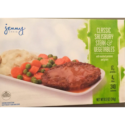 Jenny Craig Classic Salisbury Steak & Vegetables (1 Package) contains 24g total carbs, 20g net carbs, 8g fat, 17g protein, and 240 calories.