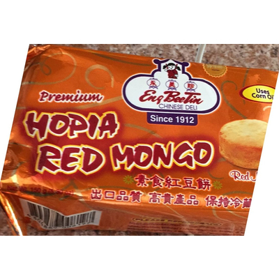 Eng Bee Tin Hopia Red Mongo (2 pcs.) contains 38g total carbs, 35g net carbs, 11g fat, 6g protein, and 270 calories.