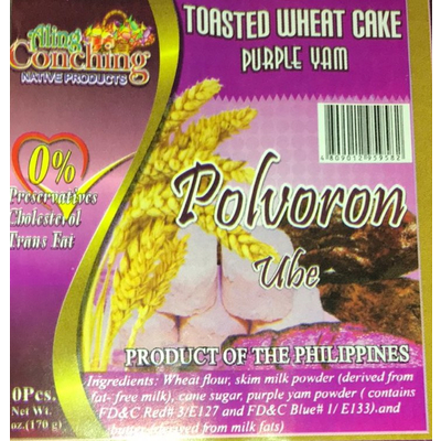 Carbs in Aling Conching Toasted Wheat Cake, Purple Yam, Polvoron Ube