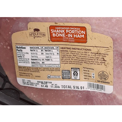 Carbs in Appleton Farms Shank Portion Bone-In Ham, Hardwood Smoked