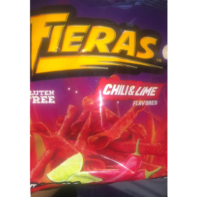 Fieras Gluten Free Chili & Lime Flavored Spicy Rolled Tortilla Chips (12 chips) contains 17g total carbs, 15g net carbs, 7g fat, 2g protein, and 130 calories.
