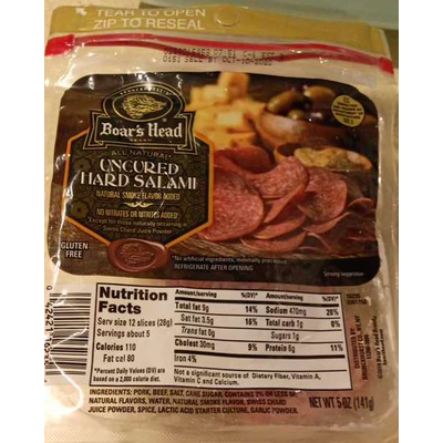 Carbs in Boar's Head Brand All Natural,Uncured Hard Salami