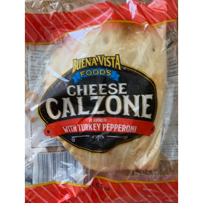 Buena Vista Foods Cheese Calzone Flavored with Turkey Pepperoni (5.5 oz.) contains 39g total carbs, 36g net carbs, 13g fat, 19g protein, and 340 calories.