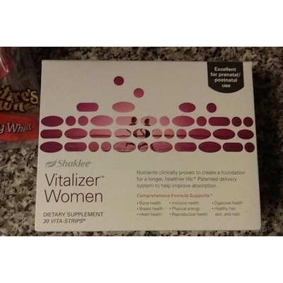 Shaklee Vitalizer Women Dietary Supplement (1 vita strip) contains 2g total carbs, 2g net carbs, 1g fat, 0.5g protein, and 20 calories.