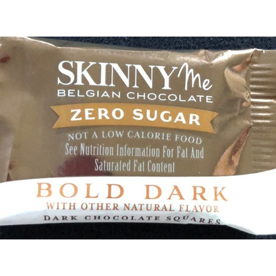Carbs in Skinny Me Belgian Chocolate Zero Sugar Dark Chocolate Squares, Bold Dark