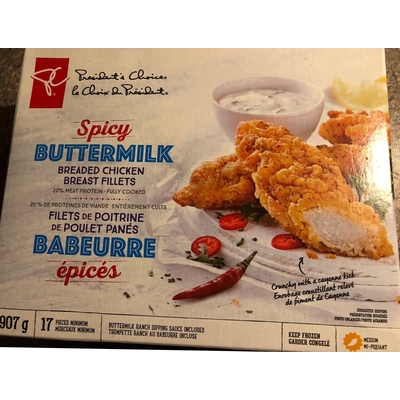 President's Choice Spicy Buttermilk Breaded Chicken Breast Fillets (1 pieces chicken breast fillets) contains 0g total carbs, 0g net carbs, 0g fat, 0g protein, and 0 calories.