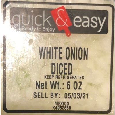 Quick & Easy White Onion, Diced (0.5 cup) contains 8g total carbs, 7g net carbs, 0g fat, 1g protein, and 35 calories.