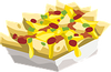 - Nachos Spicy Chicken Black Bean Grilled Onion Pepper Shroom Cheese Sauce Sour Cream Cheese Lettuce Corn