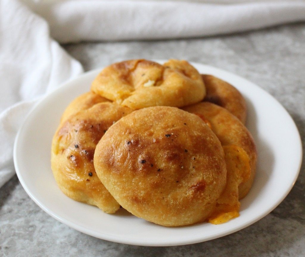 Dip a pastry brush or marinating brush into an egg white and brush it over each sphere. Top the spheres off with a pinch of black pepper before setting in the oven to bake for 25-30 minutes. Enjoy warm!