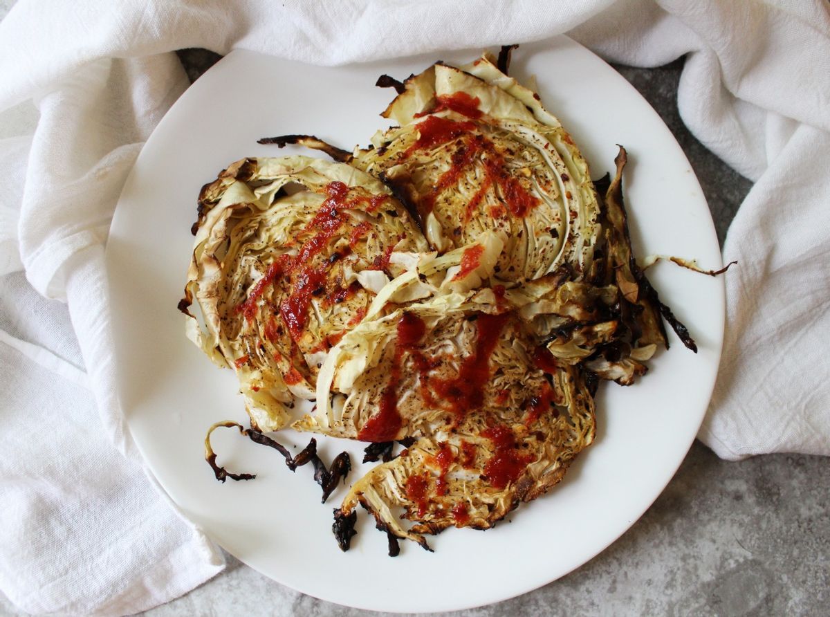 One of the easiest sides you’ll ever make: simply slice, season, and roast in the oven! Thin cabbage steaks are flavored with dry seasonings and drizzled with a ketchup-based drizzle, making the cabbage sticky and crispy in your oven.