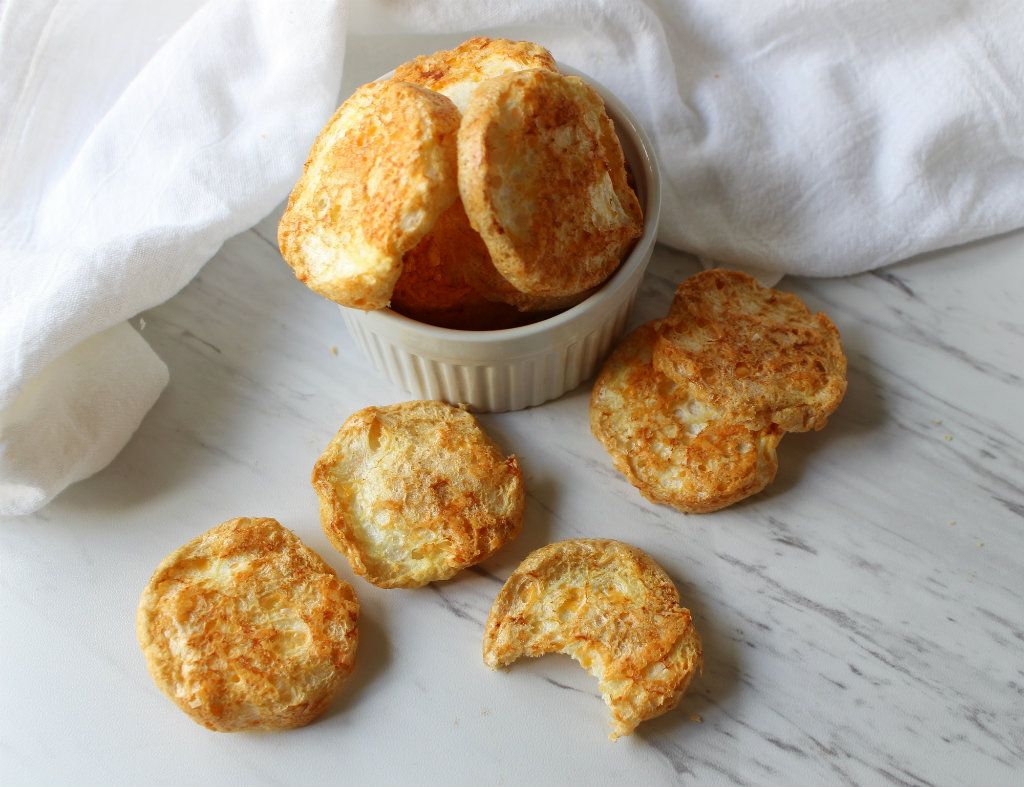 Craving the crunch of a crispy potato chip? These cloud chips are the key to satisfying your cravings for something salty! Let the cheddar cheese in this recipe be all the cheesy flavor you need, or you can toss your chips in your favorite seasonings. These chips are best enjoyed the day you make them, but you can store them in a ziploc bag after cooling. They do lose some integrity after 24 hours.