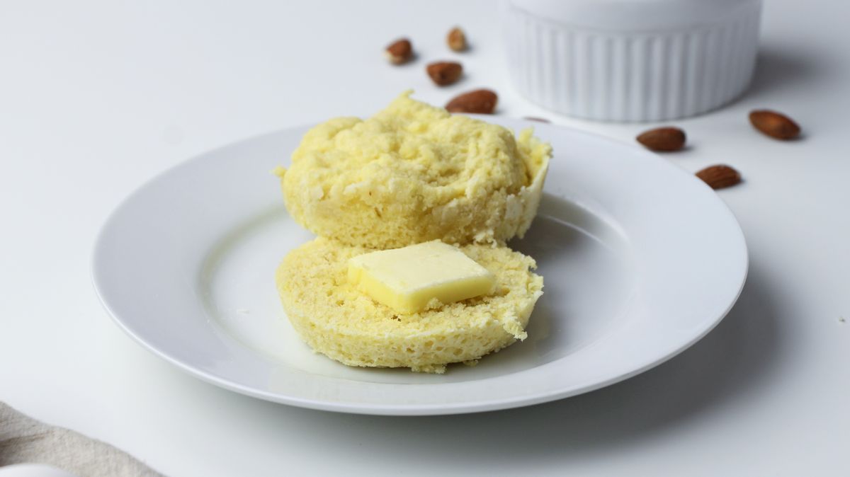 If you need to microwave the mug biscuit for longer, then do so. Once it cools for a minute, you can slip it out of the mug and slice. Smear a pat of butter on the mug biscuit as a Keto-friendly topping.