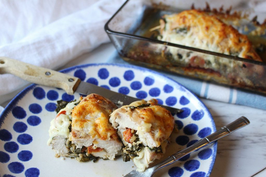 What’s better than a caprese salad? A caprese salad stuffed inside a juice chicken breast! Chopped spinach, tomatoes, and fresh basil are combined with olive oil and a drizzle of balsamic. A sprinkle of mozzarella cheese brings it all together!