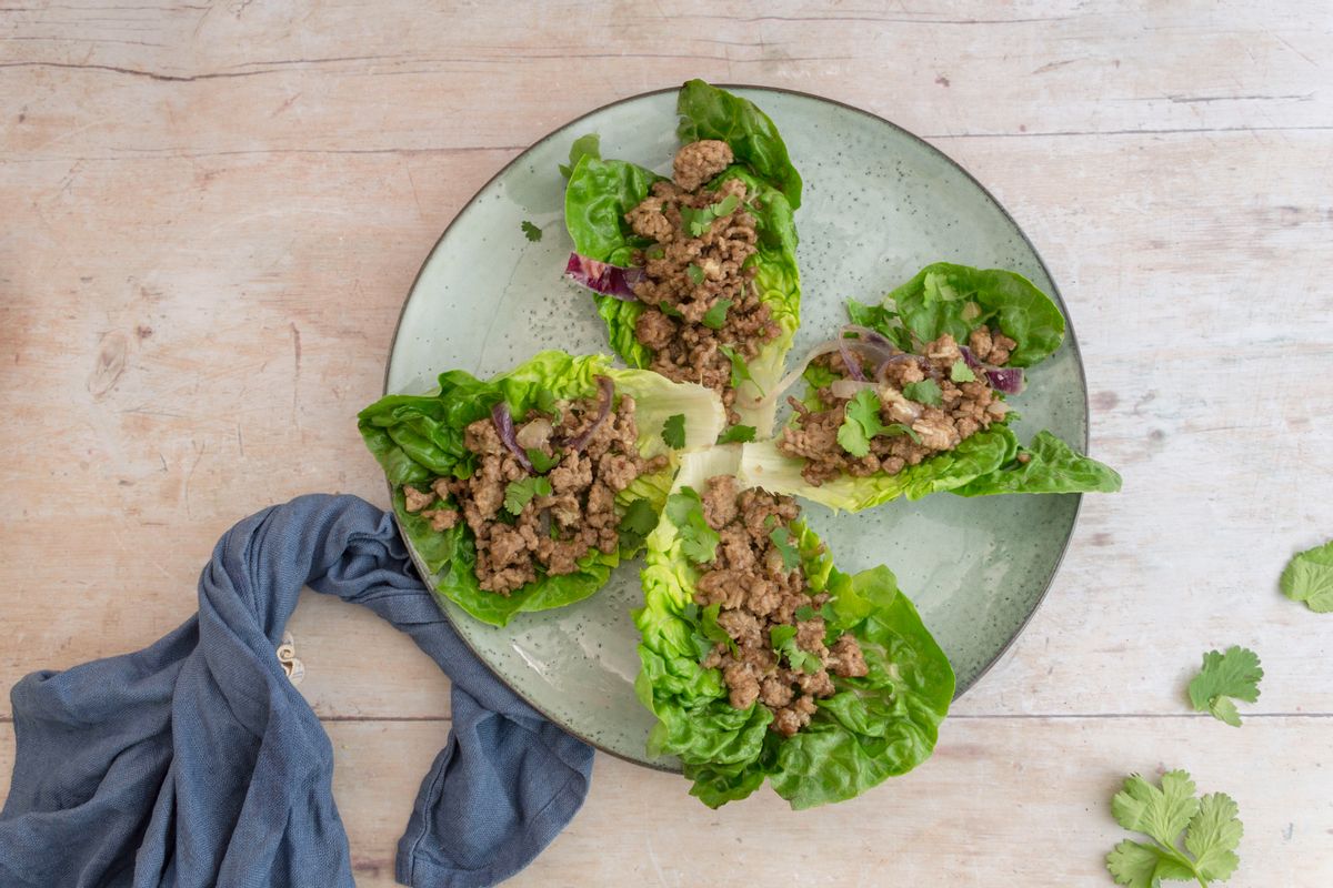 Lettuce cups are the perfect easy Keto option for your favorite low carb fillings. Firm lettuce leaves are simply used as a base to hold or wrap around your preferred fillings. Perfect for holding low carb veggies, protein and healthy fats. For this recipe, we have pan fried tender ground lamb with sweet red onion to fill our lettuce cups. This is then drizzled with a tangy lime, garlic and tahini dressing and topped with fresh cilantro.