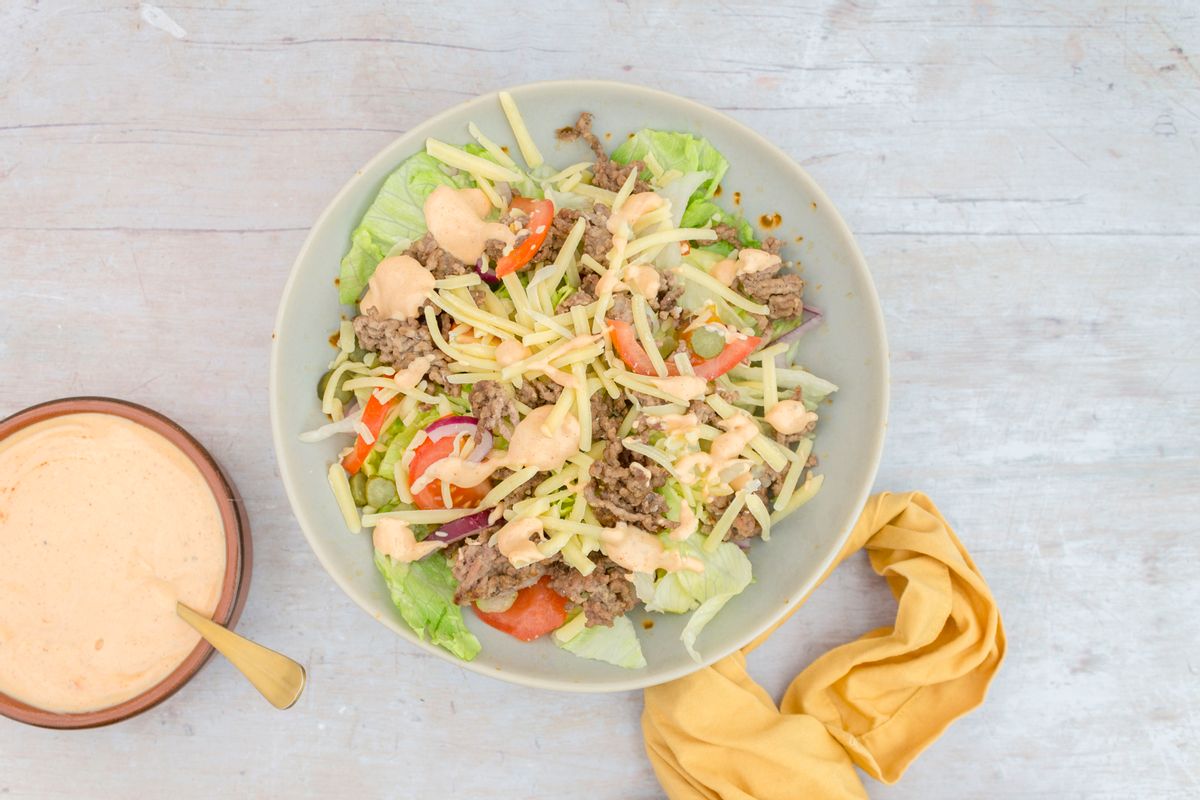 This Keto salad is inspired by a classic Big Mac®, bringing all the flavors minus the carby guilt! This quick and easy lunch salad is simple to prepare with just a handful of ingredients and ready to serve in no time. We have dressed our salad with our own Keto Thousand Island dressing. You can find the recipe for this in our sides section.