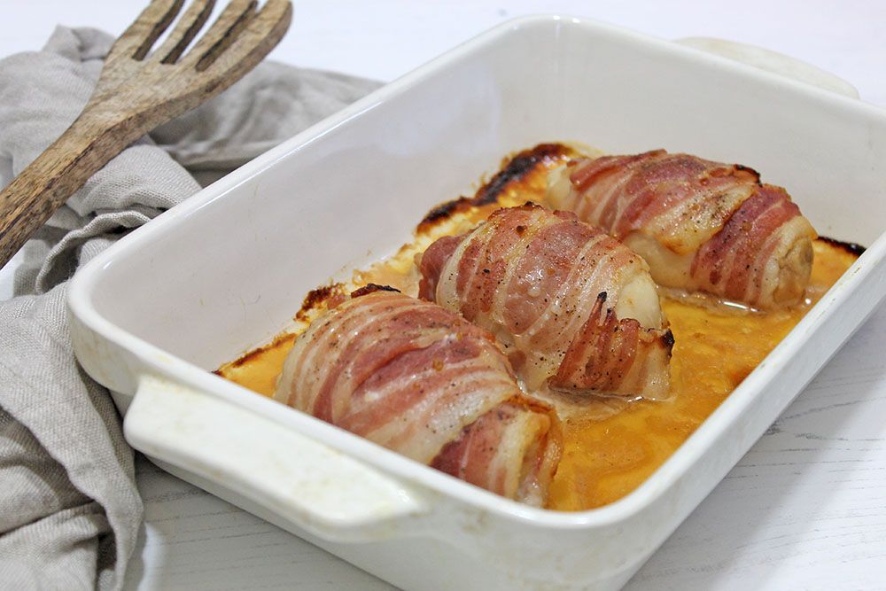 Love this recipe. Cooked mine in the air fryer and the bacon was crispy and chicken was juicy. Really not sure where all the carbs came from though.