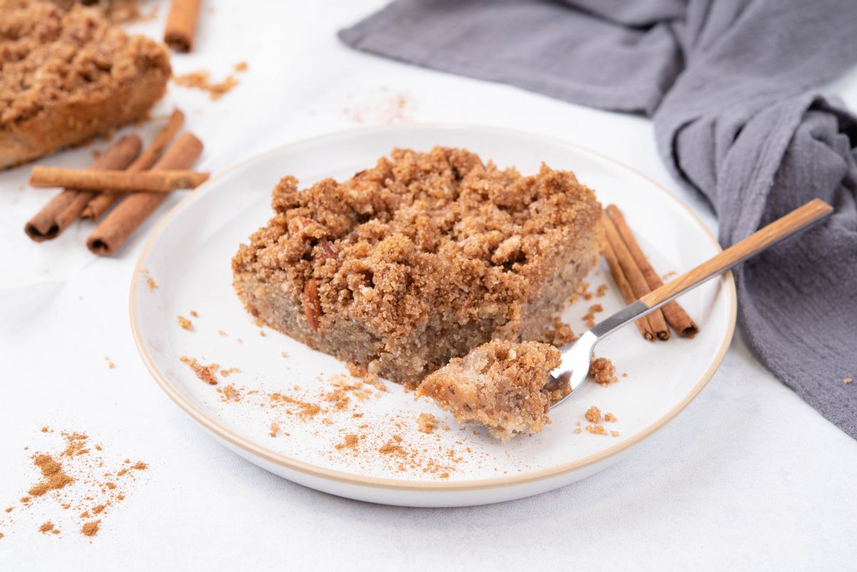 Yes, you can enjoy plenty of vegan-friendly Keto desserts and stay within your daily carb limit. This delicious vegan Keto coffee cake is completely dairy and egg-free with just 5g of net carbs per serving.