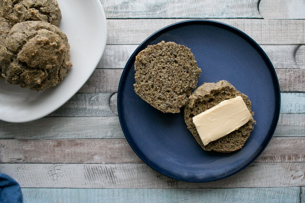 These yummy rolls are very versatile and make delicious English muffins, sandwich bread, or dinner rolls! Feel free to experiment with this Keto breakfast recipe by adding in different herbs and spices depending on what you make them for. For a savory flavor, try dried thyme, parsley, or garlic powder. For a lighter English muffin, leave herbs and spices out. The muffins have nooks and crannies that are perfect for butter, runny eggs, mayonnaise, or mustard. If you’re using the English muffins for another meal, like lunch or dinner, eat them as a side dish or pile them with sandwich ingredients. More ideas are explained further below.