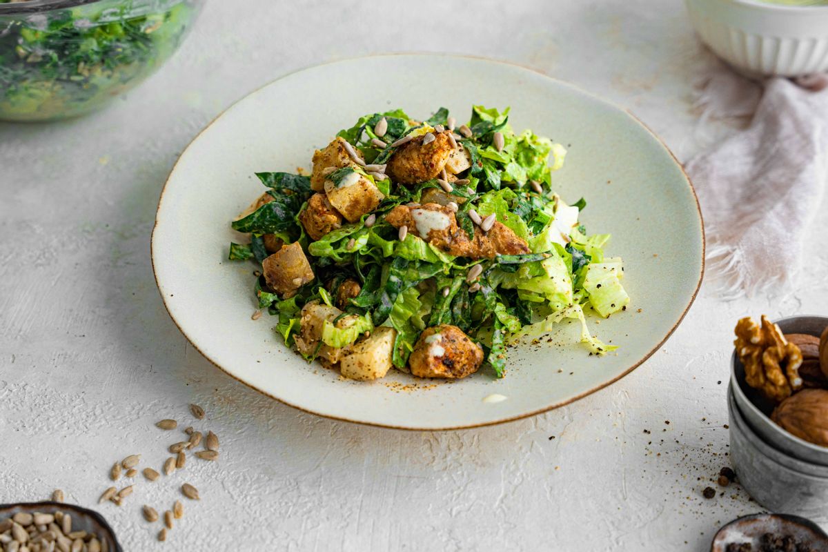 This Keto winter chicken salad can be made in four simple steps. Start by roasting the turnips in the oven until slightly golden. Then, fry the chicken with the seasonings on the stovetop until slightly charred. Make the salad dressing. Finally, combine all the salad ingredients and sauce in a bowl, garnish, and enjoy.