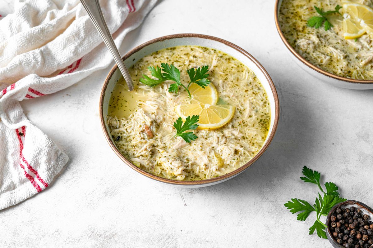 Shred the chicken and add it to a large pot. Add the chicken stock, salsa verde, and cumin powder. Juice half the lemon and pour it over the ingredients.Step 2